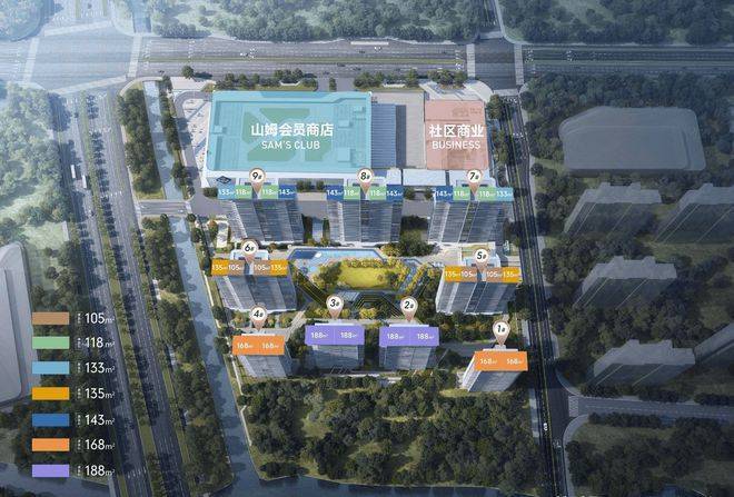 【户型面积】约105㎡、118㎡、133㎡、135㎡、144㎡、169㎡、188㎡